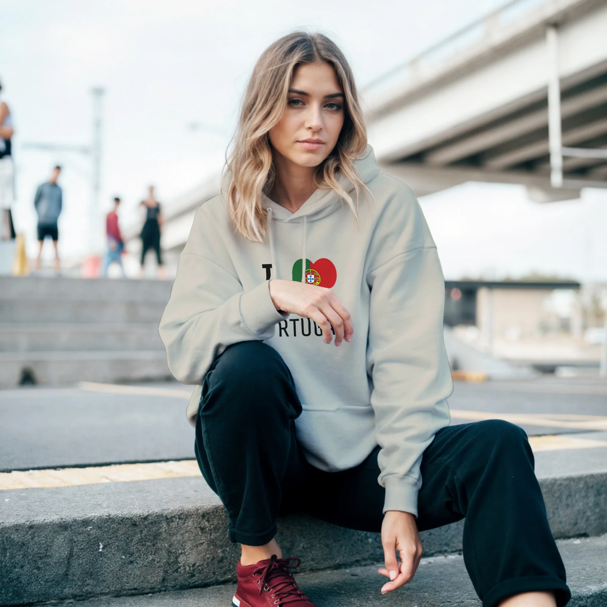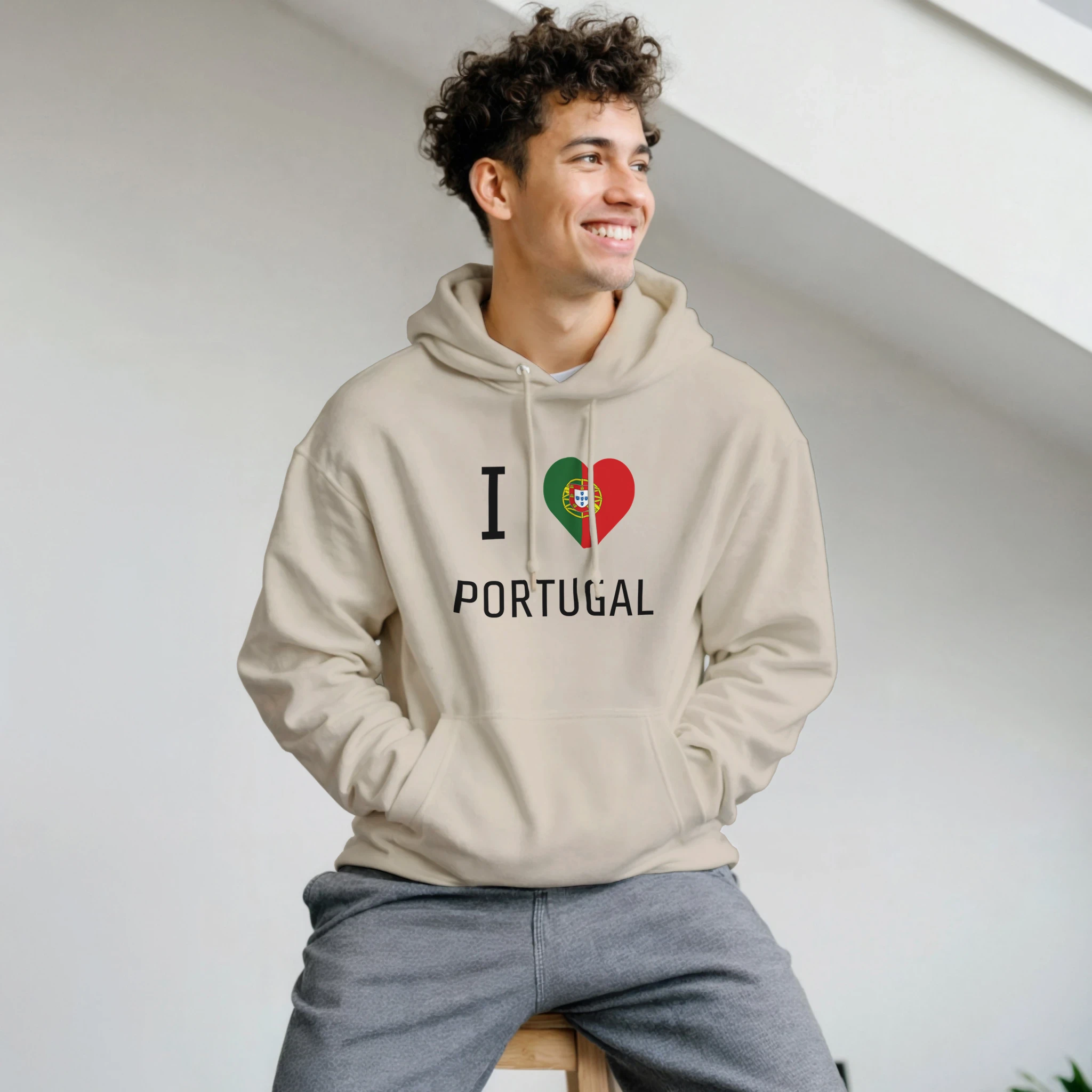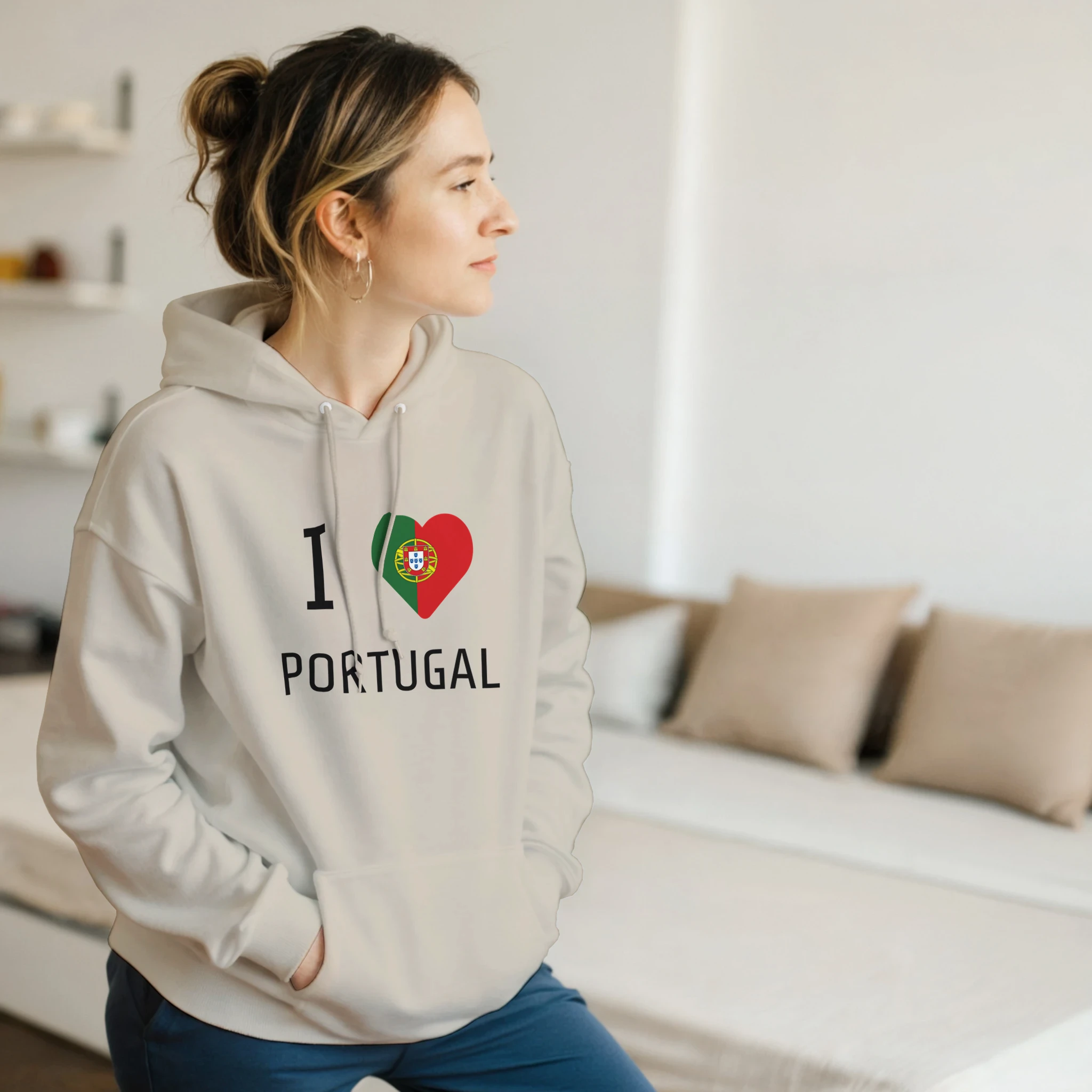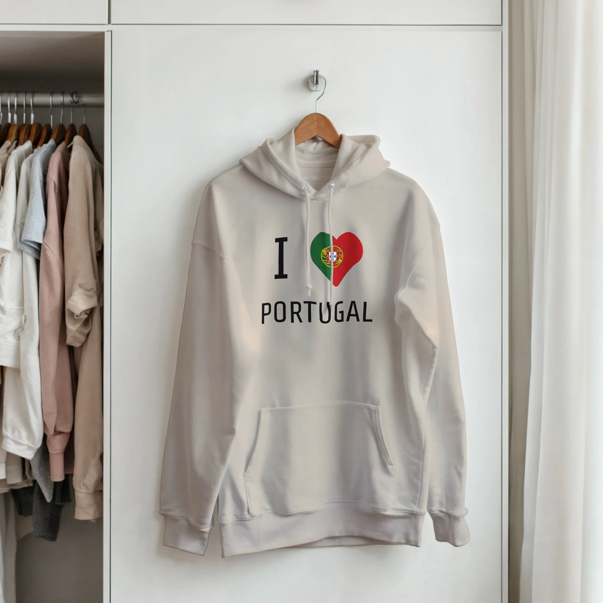 Ce sweat à capuche I LOVE PORTUGAL est bien plus qu’un vêtement : c’est une déclaration de fierté et d’attachement à vos racines.